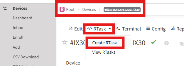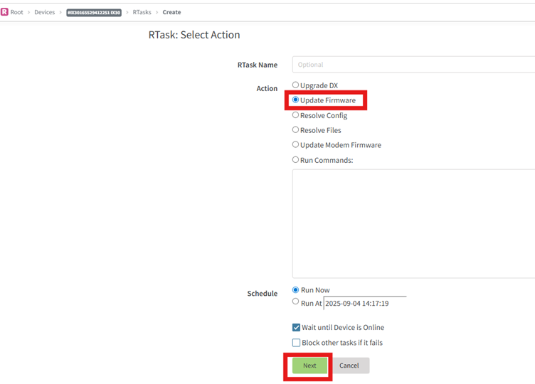 Or manually create a RTask, selecting "update firmware" as action and optionally a name:
