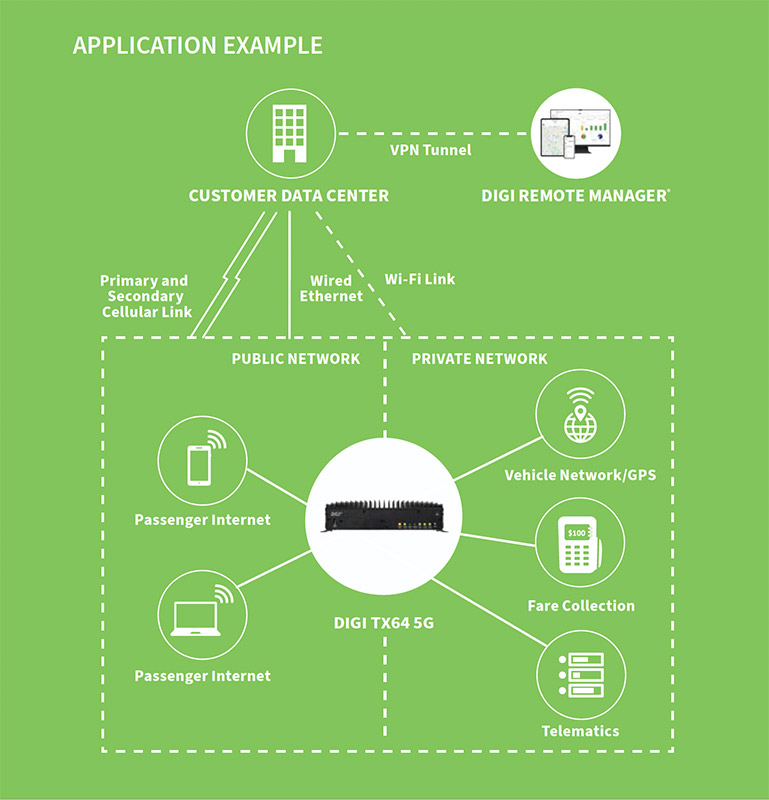 - Digi TX64 — dual cellular 5G / LTE-Advanced Pro Cat 20, dual Wi-Fi, UDR, global