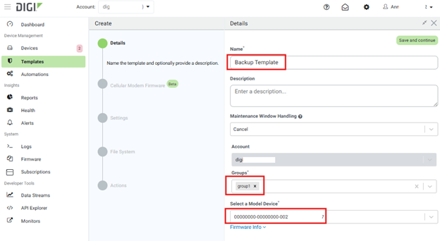 1. Create a Template in Device Management > Templates: