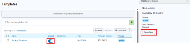 6. Once the above template is created, it will be like a “backup file” that can be “restored” by enabling it and running a manual scan on a device. The scanned device can be the same device from which the settings have been taken (example: a reset or non wanted changes have been done on it) or another one (example: original device is faulty and a replacement is needed):