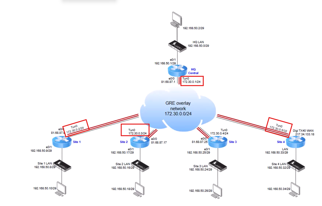 - mGRE network: 172.30.0.0/24