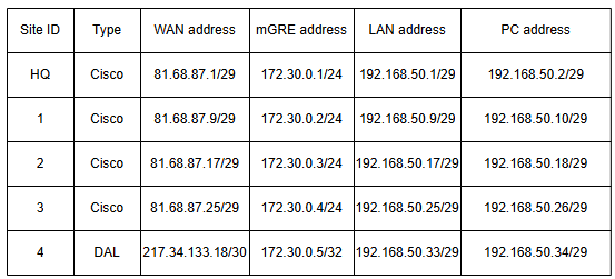 Below is a summary of the addressing structure used in this DMVPN deployment: