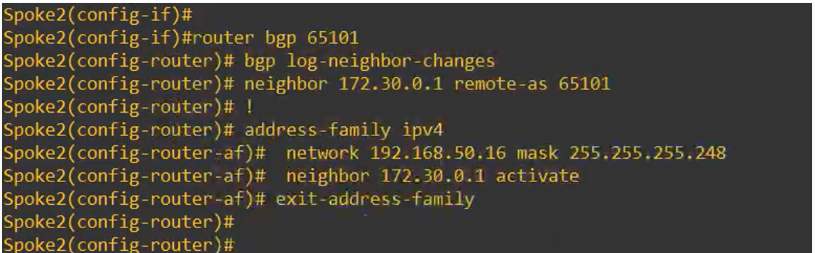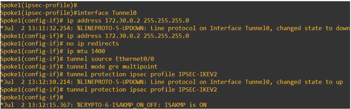 Below is the complete DMVPN configuration applied to the Central Cisco Spoke routers: