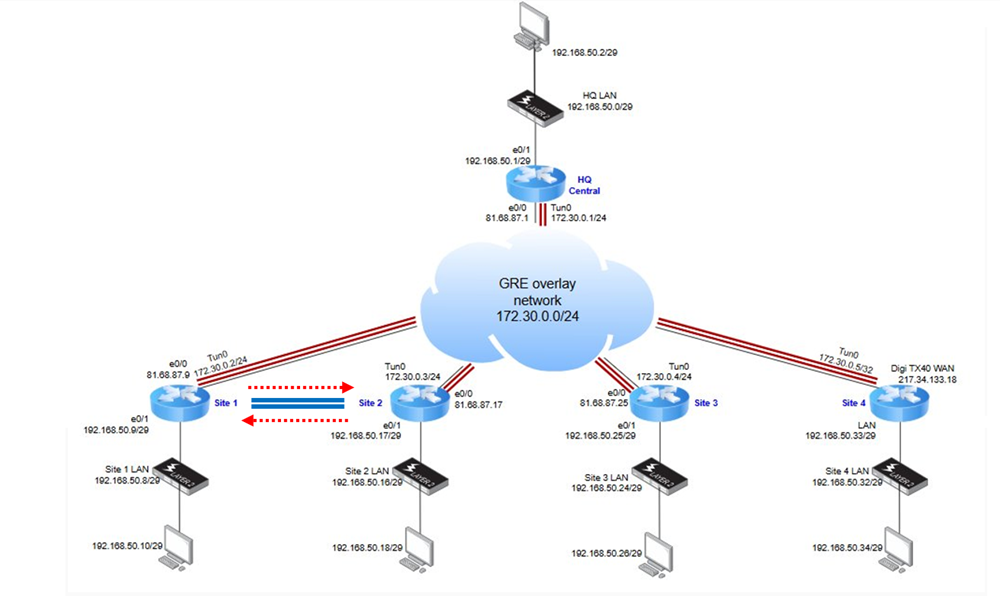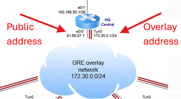 - IP address using a /24 subnet mask. This subnet size is necessary because the tunnel will operate in multipoint GRE (mGRE) mode.