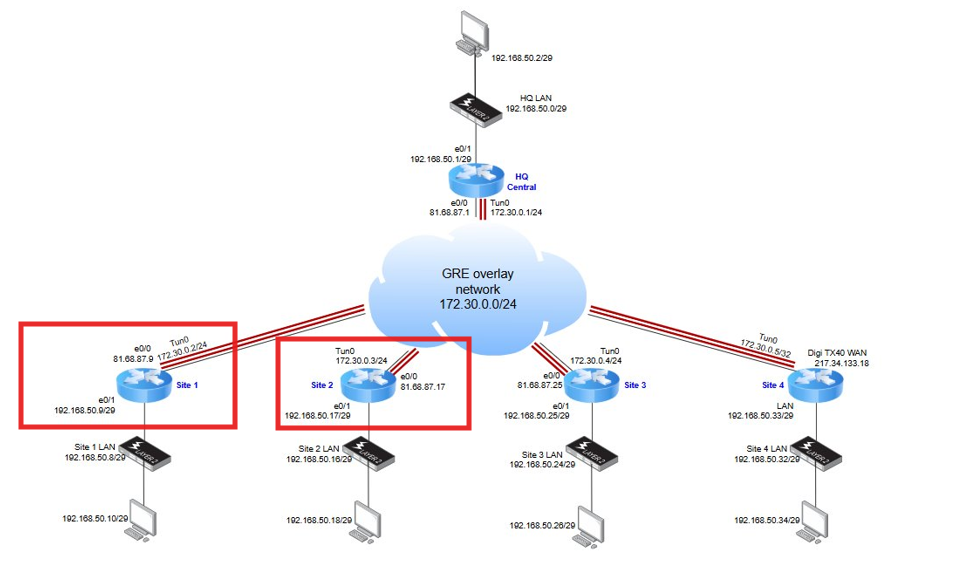 Below is the expected output you will see on the router while configuring this section for the two Sites.