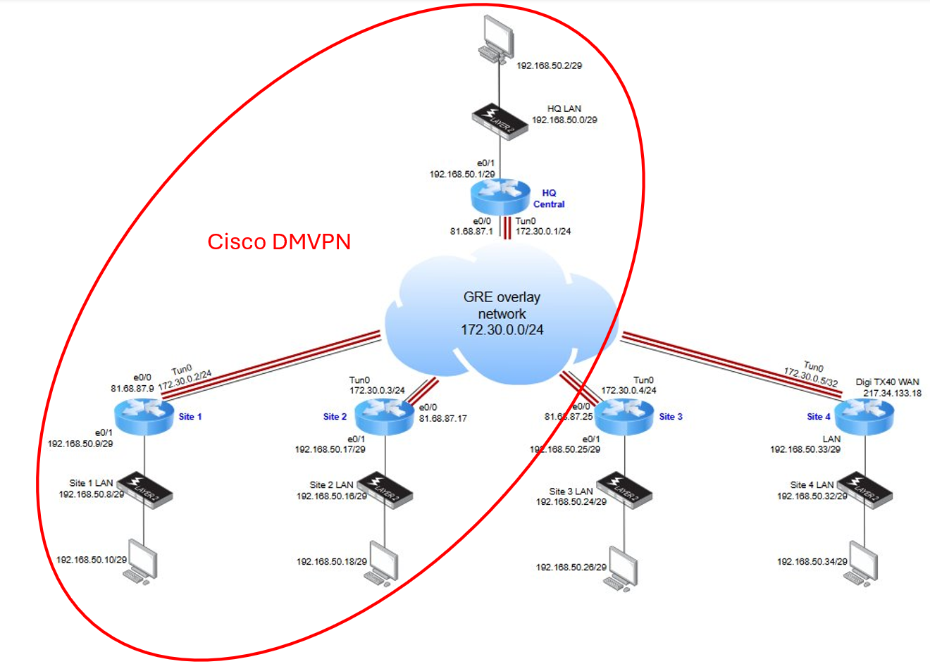 In this article, we focus on verifying the proper operation of the DMVPN network between the Cisco HUB and two Cisco Spoke routers and will consider the following network scenario: