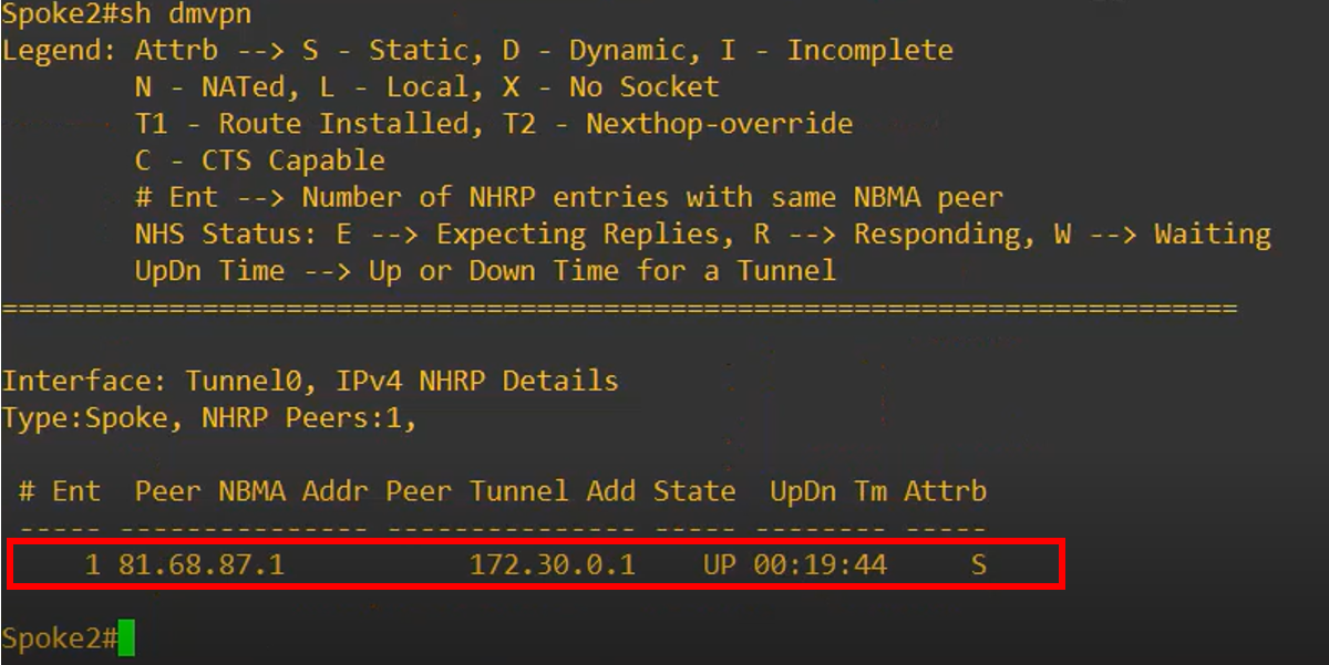 This shows that A second peer entry appeared, indicating that a direct tunnel between Spoke 1 and Spoke 2 was dynamically established.