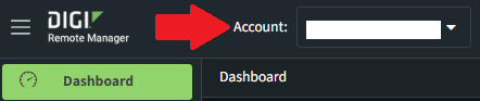 f) Your Digi Remote Manager account number. To locate this number, log into Digi Remote Manager, and provide the number next to the Account in the upper-left hand corner: