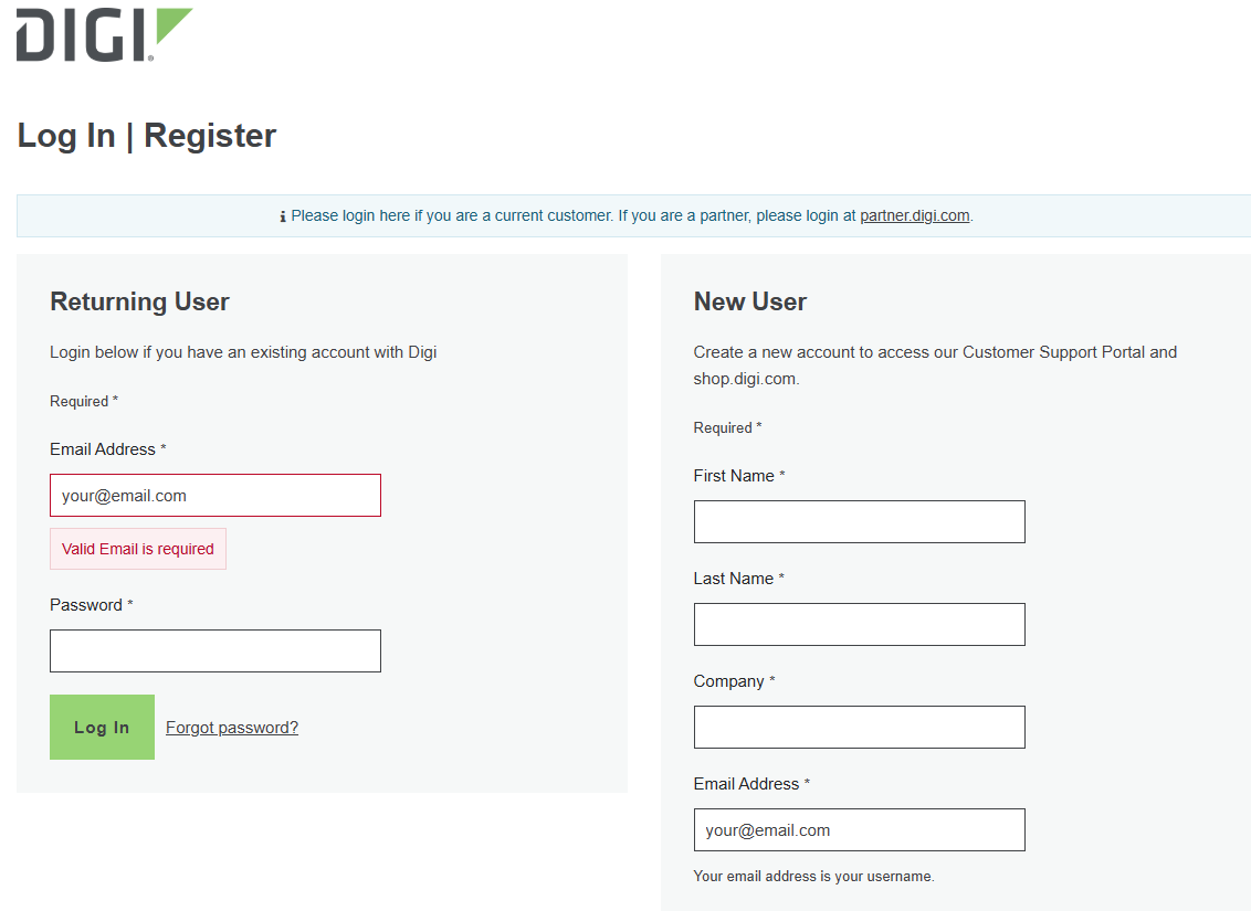 - The other method, if you do not have a Digi Remote Manager account, you will need to register your new device under my.digi.com. The following procedure covers how to do this.